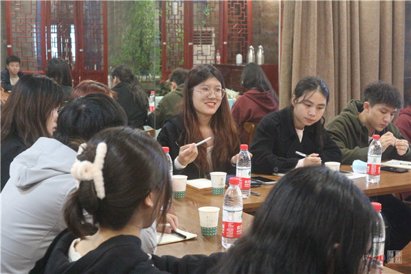 总结结束后,校团委老师严文高受邀发言。首先,他诚挚地欢迎学生会主席团成员,并向承办工作交流会的各个院学生会表示感谢,鼓励大家坚持交流,听取不同的工作意见,从而实现共同进步的目标。其次,严文高对近期的学生会工作做出总结,强调学生会的初心与宗旨——全心全意为同学服务。他说:“在做学生工作时,我们要明确工作的出发点,多问问自己是否有服务于同学们的思想成长、精神文化、校园生活、全面发展这四个方面的需求。”最后,严文高通过举出实例,从向上开拓进取、向下努力扎根两个方面提出了对同学们的要求。他希望各院学生会能抓住自身特色和亮点,不断创新,提升学生工作水平,与此同时刻苦学习,主动担当,严于律己。