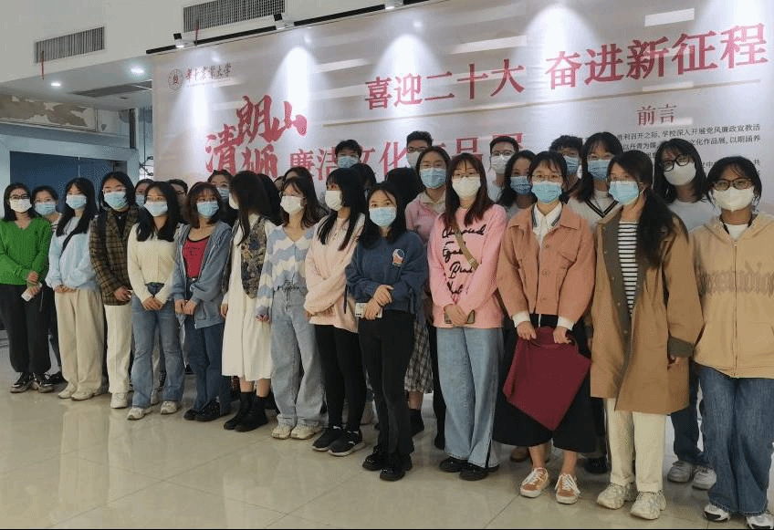 10月24日上午,在学习中国共产党第二十次全国代表大会会议精神的基础上,王熙悦带领支部同志参观了位于图书馆五楼汇雅书邨“清朗狮山”廉洁文化作品展。看到一幅幅精美的展出作品,大家纷纷表示,作为新时代的新青年,应感悟廉洁文化,争做时代新人。徐一鸣在参观后说道:“作为一名华农人我们要坚持与祖国同行,为人民奉献,让青春在廉洁文化的熏陶中绽放绚丽之花。”