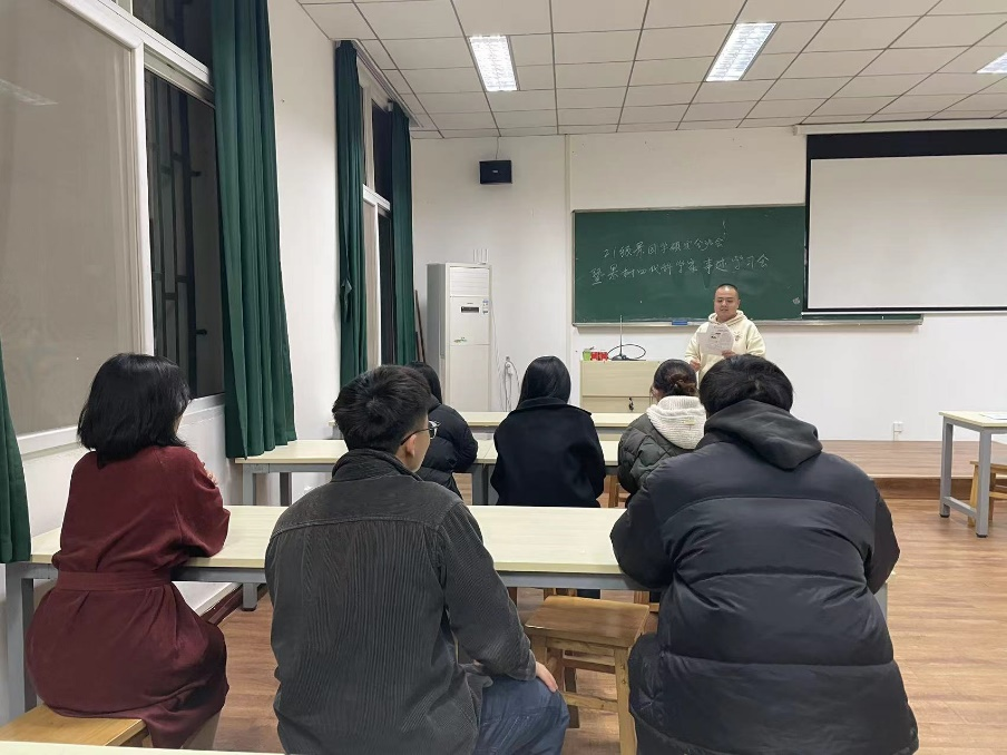 2024年3月9日晚,2021级景园学硕班于景园楼309召开2024年第一次班会,会议由团支书王乾名主持。
