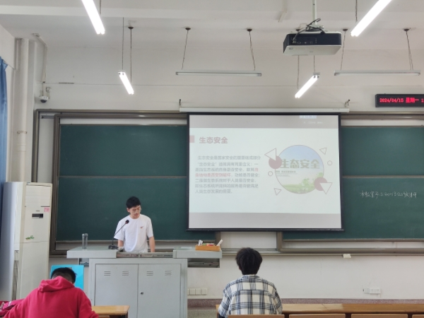 会议最后,黄奕同志讲述了有关生态安全的学习感想,他以加拿大一枝黄花为例,讲述其危害并引出生态安全的重要性。