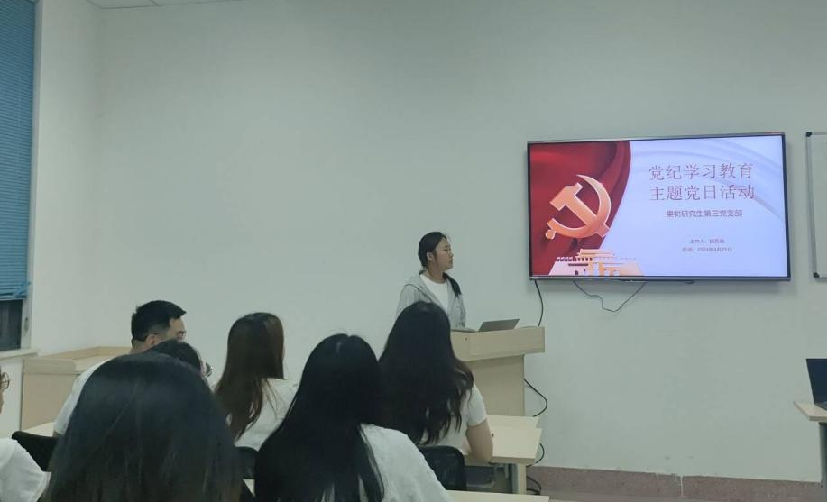 4月25日晚,果树学研究生第三党支部在园林南楼521会议室开展“党纪学习教育”主题党日学习活动,党支部全体党员同志参加,会议由党支部书记魏若楠主持。