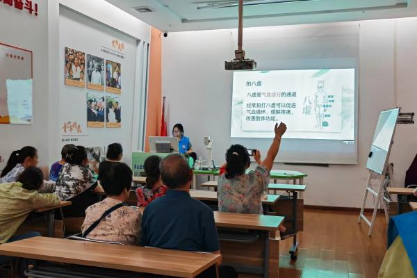 活动伊始,园艺2302班的魏俊莉同学手持一束新鲜艾草,其特有的香气迅速弥漫整个活动现场。她首先以明代医药学家李时珍故乡的蕲艾为引,详细介绍了艾草的历史、种类及用途,吸引了在场老人们的浓厚兴趣。接着,魏俊莉将话题聚焦在老年群体更为关心的“艾草在生活中的保健与疗愈作用”上,并详细演示了用艾草锤的拍八虚的方法。