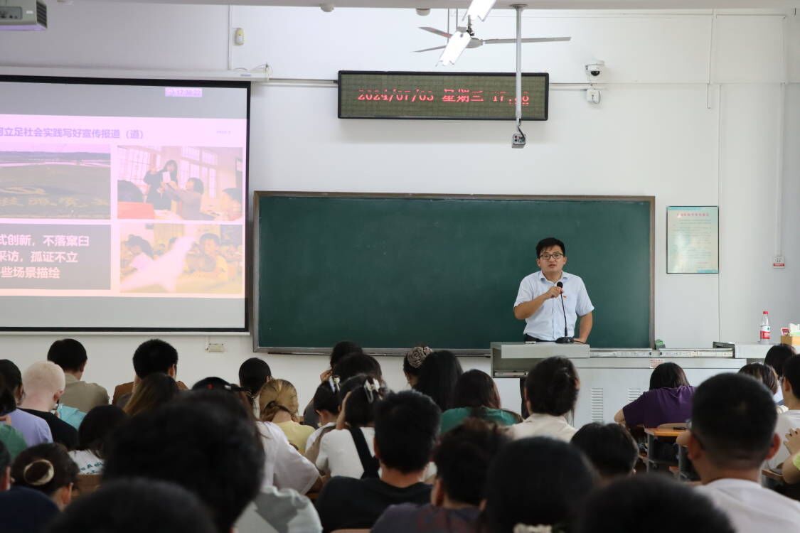 【核心提示】7月3日,性爱网 邀请校党委宣传部徐行老师于三教A203开展2022级暑期社会实践新闻宣传工作培训会。辅导员郭艺佳主持会议,各社会实践团队负责人、新闻宣传成员、性爱网 新闻与宣传系统学生干部参会学习。