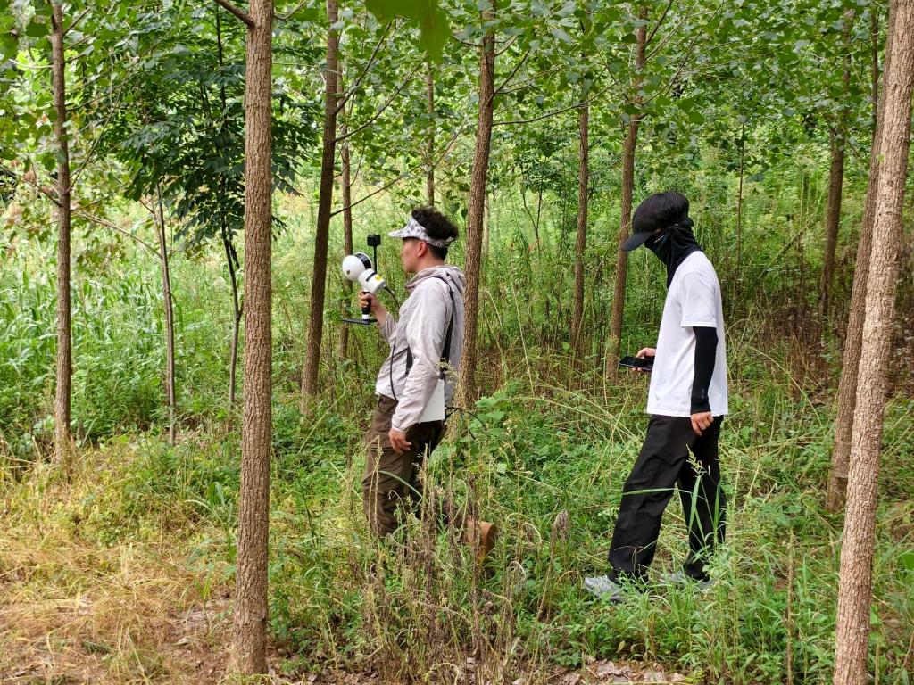 团队成员进行杨树林胸径、树高测量和单木定位(通讯员 黄铃雅 摄)