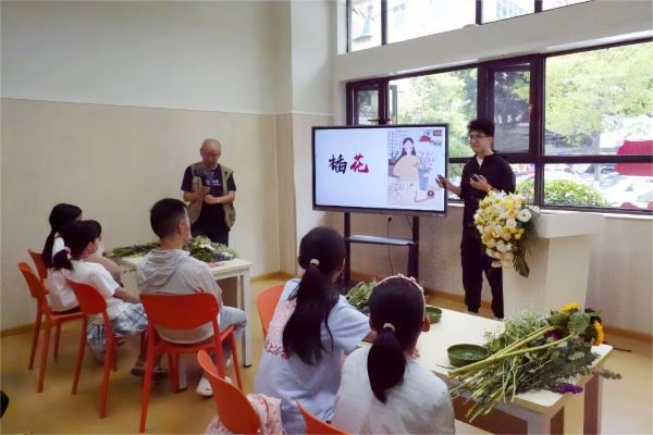 为巩固课堂知识记忆,实践队员们精心策划了一系列与科普知识、日常生活观察有关的“趣味问答”活动,通过有奖竞答的形式激发孩子们的兴趣和求知欲。实践队员们在一旁细心观察,耐心引导,鼓励孩子们大胆发言。在提问到哪些作品属于东方式插花时,孩子们各抒己见,或表达对某一作品独特又充满童趣的理解,又或提出质疑探求更深层次的知识。这一环节不仅锻炼了孩子们的知识接受和反应能力,还让孩子们在交流互动中锻炼了思维能力和语言表达能力。