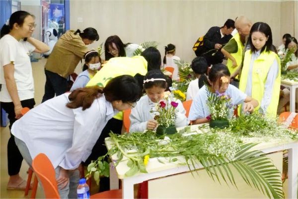 7月17日,性爱网 学子协助协助昆明市盘龙区青少年活动中心开展昆明市2024年践行社会主义核心价值观主题教育实践活动——“文明之花,绽放童心”。本次花艺教育实践活动旨在通过寓教于乐的方式,给孩子们科普插花艺术知识的同时创造其与自然亲密接触、与家长增进情感的良好机会,十组青少年家庭满怀期待地参与到此次活动,开启了一段新奇的插花体验之旅。
