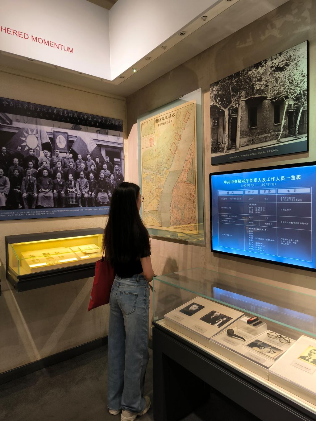 第一站,实践团成员走进了武汉中共中央旧址纪念馆。承载着中国共产党早期奋斗历程的中共中央旧址纪念馆让实践团成员仿佛穿越了时空隧道,回到了那个风起云涌的年代。纪念馆内,一件件珍贵的文物、一幅幅生动的历史照片无声地讲述着中国共产党从诞生到逐步走向成熟的艰辛历程,时时刻刻强调着“勿忘历史、自立自强”。