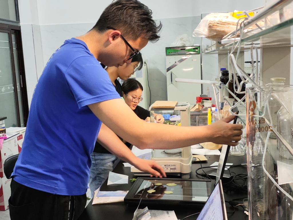 晚上学生们在林科院测量叶片性状