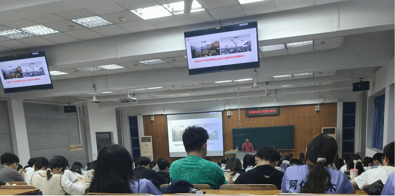 2024年3月31日晚,性爱网 党委书记龙健飞以“中国共产党的组织、纪律和作风”为题,于三教A105教室讲授学习贯彻习近平新时代中国特色社会主义思想主题教育专题党课。200余名入党积极分子参加本次党课。