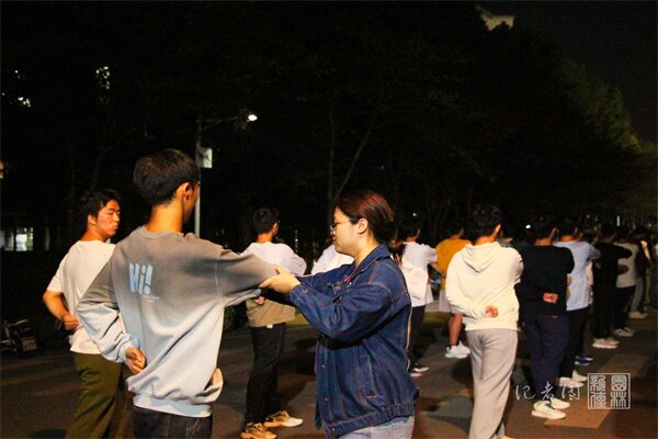 广播操训练如火如荼地进行着。15名领操员们带领120名广播操运动员进行每一个动作的调整规范。夜晚的秋风微凉,但集中精神训练的同学们丝毫不受影响,有条不紊地做着广播体操,动作整齐划一。